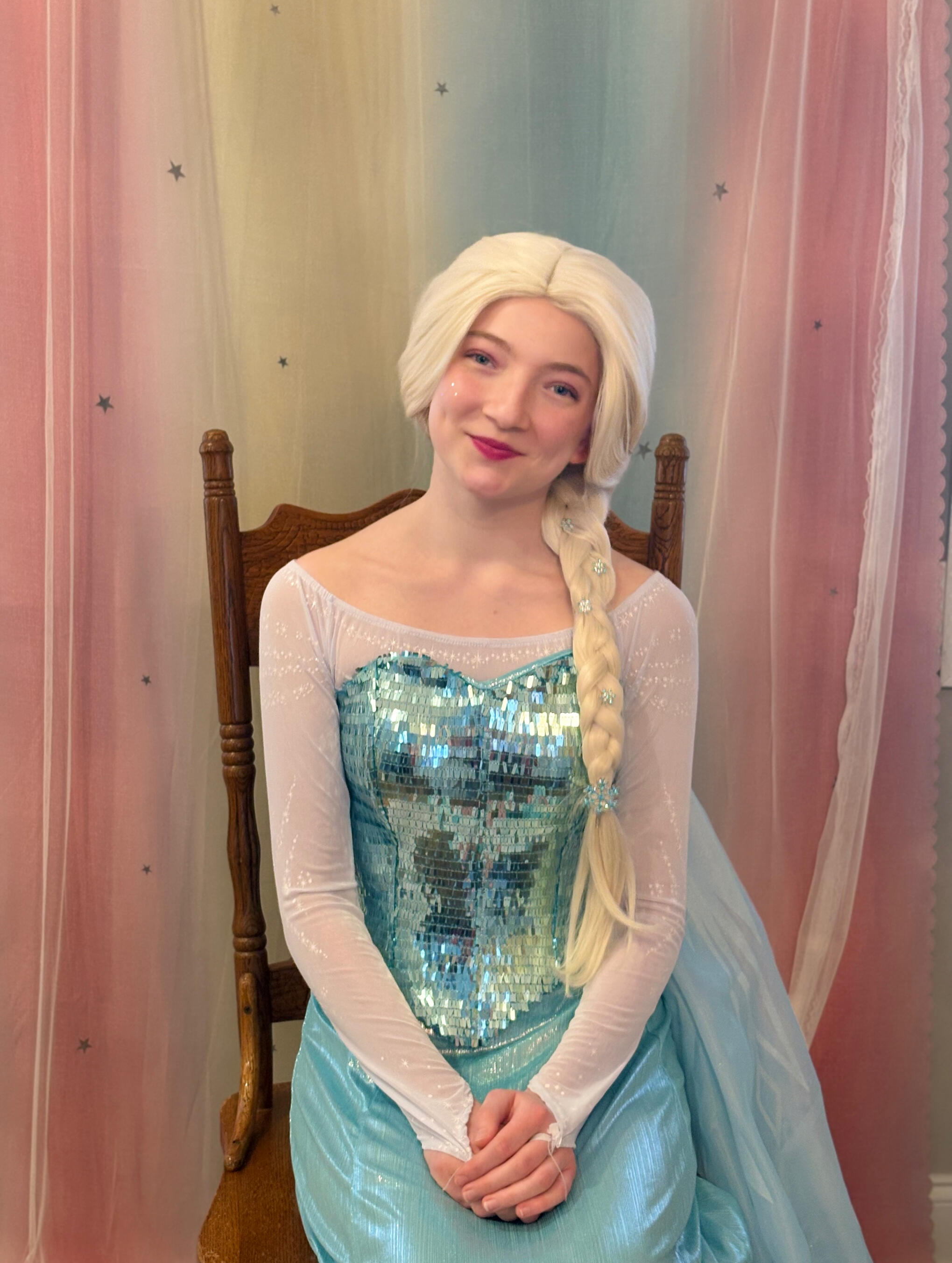 Lila is a local high schooler who remembers the feeling of meeting a princess as a little girl. Now, she is thrilled to be able to bring that experience to other children, and takes the utmost care in making every child feel special!